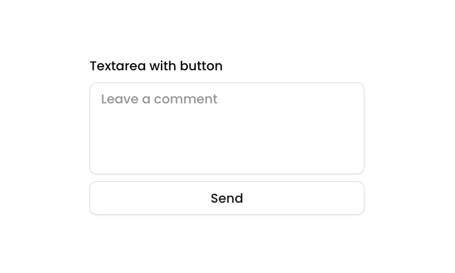 Textarea 07 is a comment or message input component featuring a labeled multiline text area with a ‘Send’ secondary button below. It is designed for user input scenarios such as leaving comments, sending messages, or submitting feedback. The component includes focus, validation error, and disabled visual states for the textarea, as well as hover and disabled states for the button.